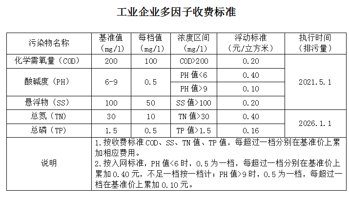 工業企業多因子收費標準