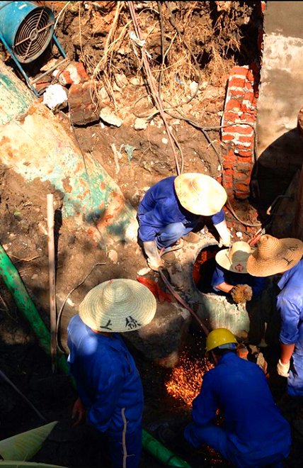 為盡快消除受影響區(qū)域的低壓現(xiàn)象,確保居民正常用水,供水公司一方面加強(qiáng)供水調(diào)度,啟動(dòng)搶修預(yù)案,及時(shí)發(fā)布停水信息;另一方面及時(shí)組織人員搶修,關(guān)閥、排水、焊接……,搶修人員冒著近40℃的高溫,頭頂烈日,揮汗如雨,在經(jīng)過連續(xù)4小時(shí)不間斷搶修作業(yè)后,終于在傍晚用水高峰前完成搶修,恢復(fù)通水。