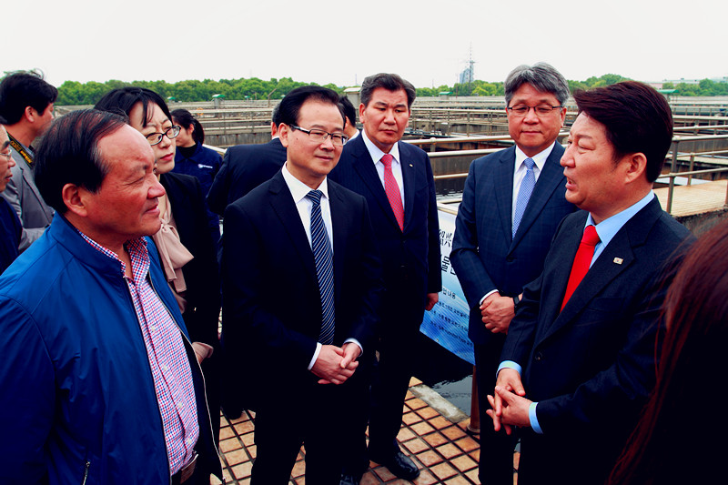 4月25日,由韓國大邱市市長權(quán)泳臻帶隊的韓國大邱市友好經(jīng)貿(mào)訪問團一行26人,在紹興市副市長徐明光、副區(qū)長王志強等陪同下,到紹興水處理公司參觀考察。集團公司副總經(jīng)理胡張堯等陪同。
