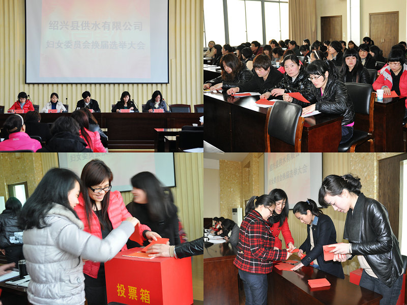 供水公司婦委會于2008年8月成立,在近4年的時間里,婦委會緊緊圍繞公司中心工作,切實履行職責,為公司和諧健康發展起到了積極的推動作用。本次會議,供水公司婦委會主任酈紅英代表第一屆婦委會作了工作報告,按照組織原則和程序,舉手表決通過了《紹興縣供水有限公司婦女委員會換屆選舉辦法》。同時,采用無記名差額選舉方式,投票選出新一屆婦委會委員,酈紅英連任為新一屆婦委會主任,并代表新一屆委員向全體女職工代表作表態發言。