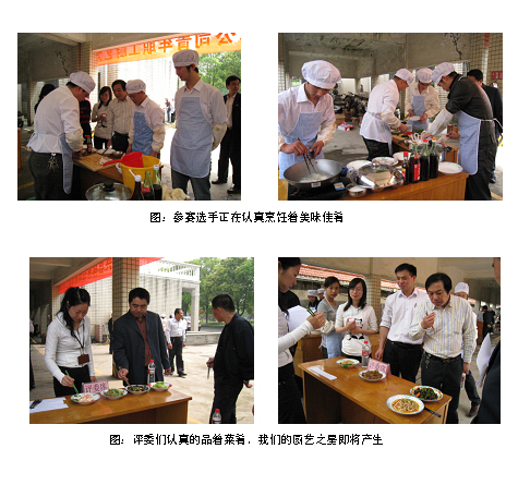 廚藝比賽按部門分為8個(gè)小組,每組由4人組成,而參賽都是35周歲以下青年員工。按規(guī)則各組選手均要在規(guī)定的時(shí)間內(nèi)完成了比賽所定的一冷菜、二小炒、一煲湯四樣菜式。較往屆此次比賽多了一項(xiàng)規(guī)定金額自選購(gòu)菜,使參賽小組烹飪的菜肴更具選擇性與特色化。