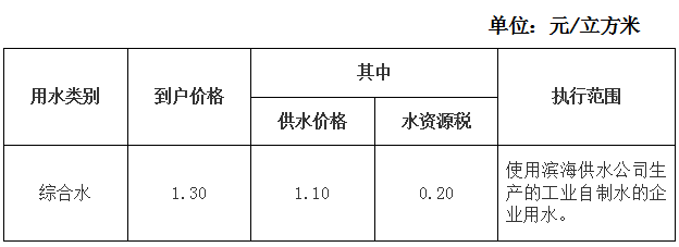 濱海工業區綜合水水價收費標準