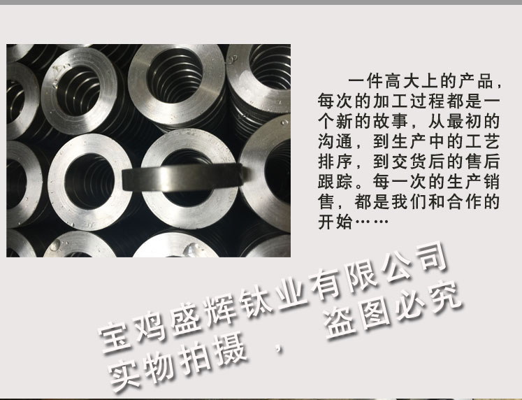 寶雞盛輝鈦業有限公司是一家主要從事鈦及鈦合金棒,鈦環,鈦法蘭及鈦合金板材的高新技術企業,公司提供鈦環,鈦合金棒批發,鈦環的生產工藝服務,以人為本,質量取勝為宗旨:18791863990,18740375975