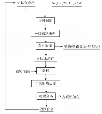 鋁熱還原流程圖,與傳統的鈦、鈦鋁合金技術相比,該方法可實現鈦和鈦合金生產的低成本、零污染排放,具有非常好的應用前景。