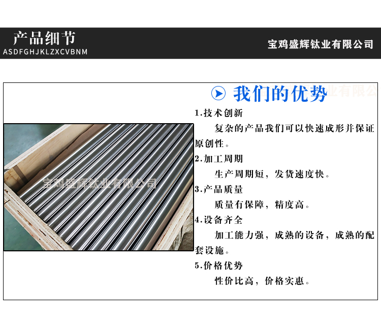 寶雞盛輝鈦業有限公司是一家主要從事鈦及鈦合金棒,鈦環,鈦法蘭及鈦合金板材的高新技術企業,公司提供鈦環,鈦合金棒批發,鈦環的生產工藝服務,以人為本,質量取勝為宗旨:18791863990,18740375975